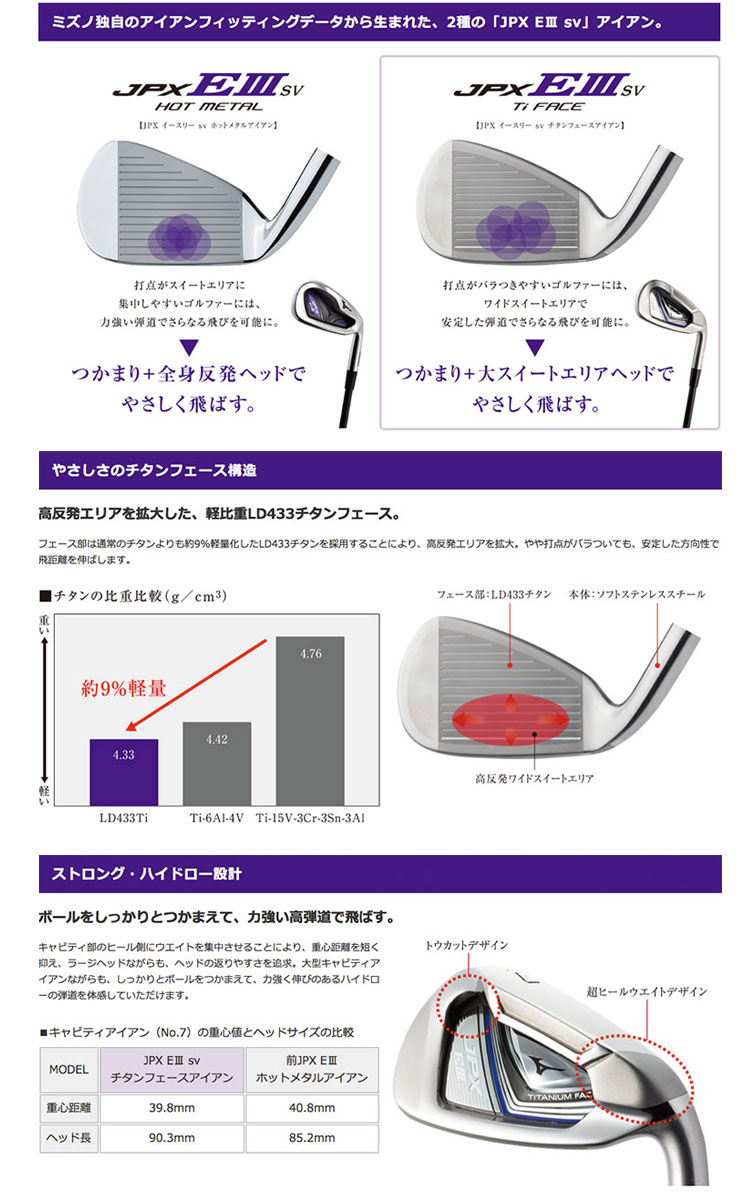JYPERS JEEP ジーパーズ 日本 JPN JP ミズノゴルフ MIZUNO GOLF IRON SET E3 ミズノ JPX EIII SV チタンフェースアイアン 5本組(6I-PW) Orochi Light カーボンシャフト装着 日本正規品【ゴルフ】【アイアンセット】