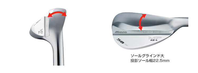 アプローチでもダウンブローに打ち込むスイングにマッチしたソール形状。バウンス角を大きくし、丸みを持たせることにより、あらゆるライでも、しっかりと打ち込んでもスムーズに振り抜けます。