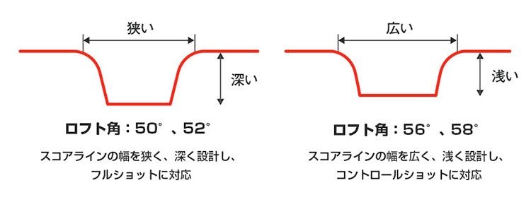 番手別にスコアラインの幅と深さを変化させることにより、ショットバリエーションにマッチしたスピンコントロールを可能に。