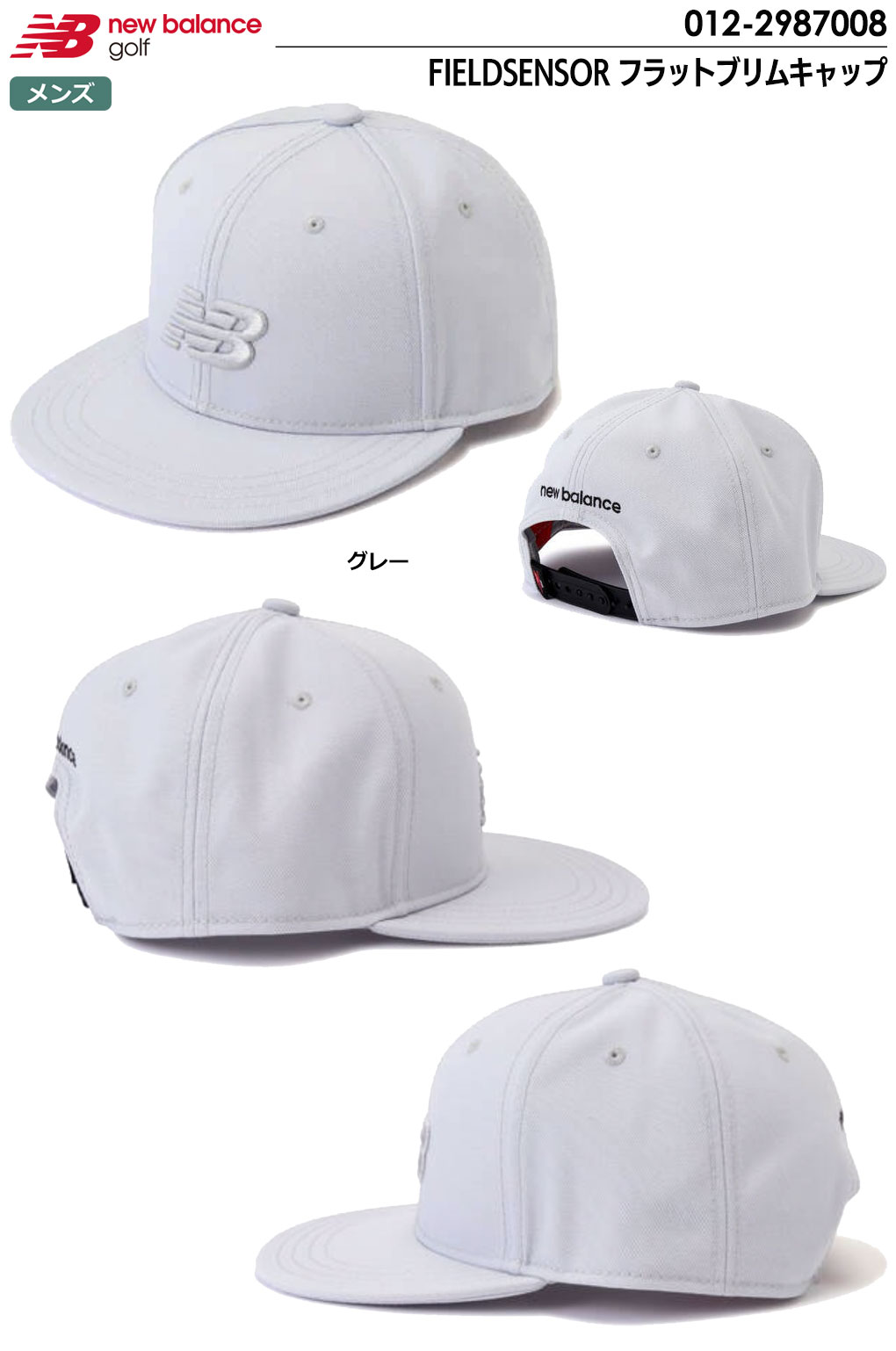 【毎日発送】ニューバランス FIELDSENSOR フラットブリムキャップ 012-2987008 グレー ゴルフキャップ newbalance golf 2022秋冬モデル 日本正規品