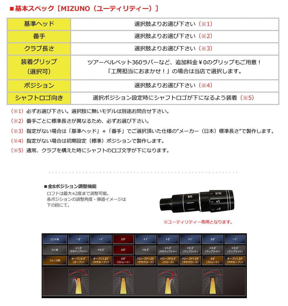 ユーティリティ ハイブリッド ミズノ シャフト カスタム スリーブ ゴルフ 可変 カチャカチャ ジーパーズオリジナル スリーブ付きシャフト 即日発送対象外