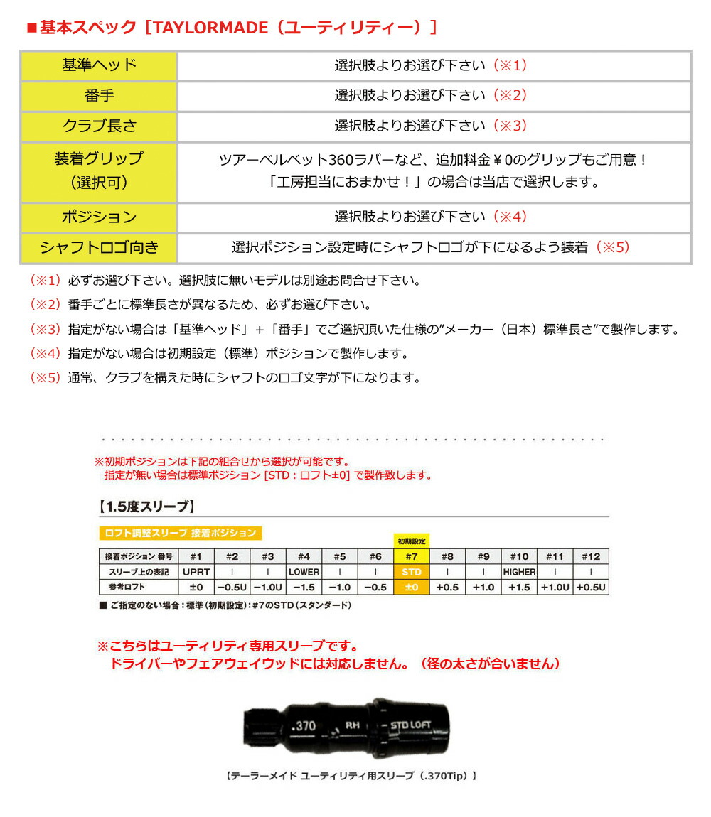 ユーティリティ ハイブリッド レスキュー テーラーメイド シャフト カスタム スリーブ ゴルフ 可変 カチャカチャ ジーパーズオリジナル スリーブ付きシャフト 即日発送対象外
