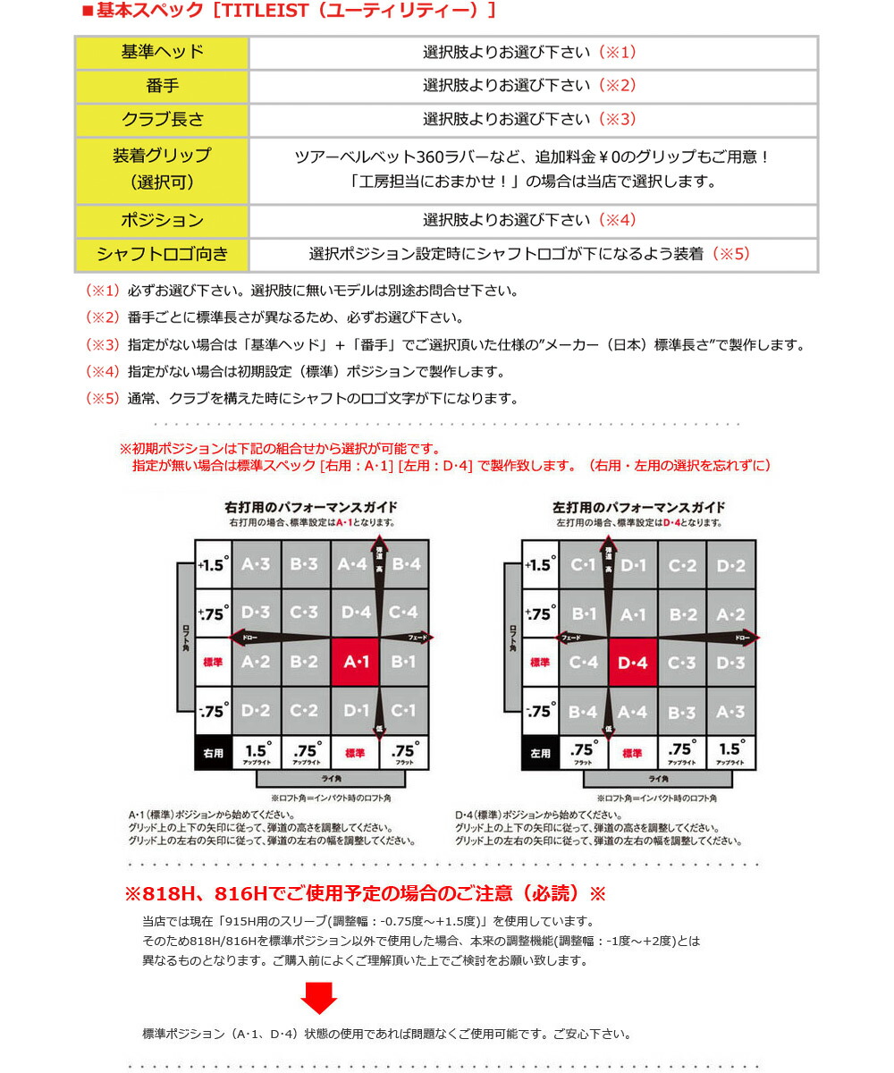 選択項目に無い仕様(例:グリップの下巻き指定など)については、ご注文時に備考欄・ご要望欄でご指定頂くか、別途お問合せ下さい。