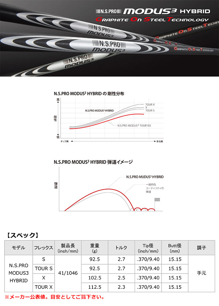 ■日本シャフト N.S.PRO MODUS3 HYBRID Graphite On Steel Technology モーダスハイブリッド ハイブリッド用 日本モデル NIPPON SHAFT