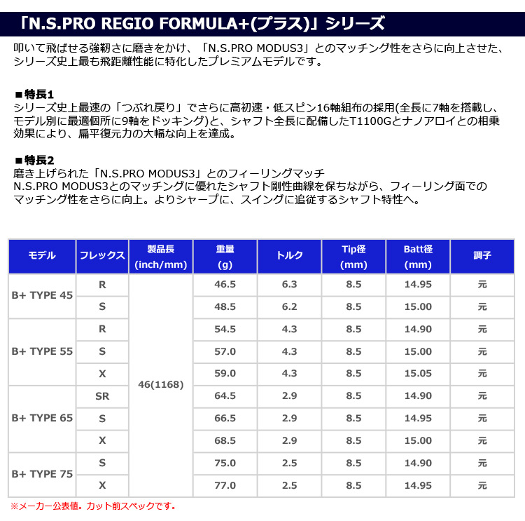 ヤマハ YAMAHA スリーブ付きシャフト N.S.PRO Regio Formula B+ (RMX118/RMX218/RMX116/RMX216 ) 日本シャフト NSプロ レジオフォーミュラ Bプラス ゴルフ シャフト