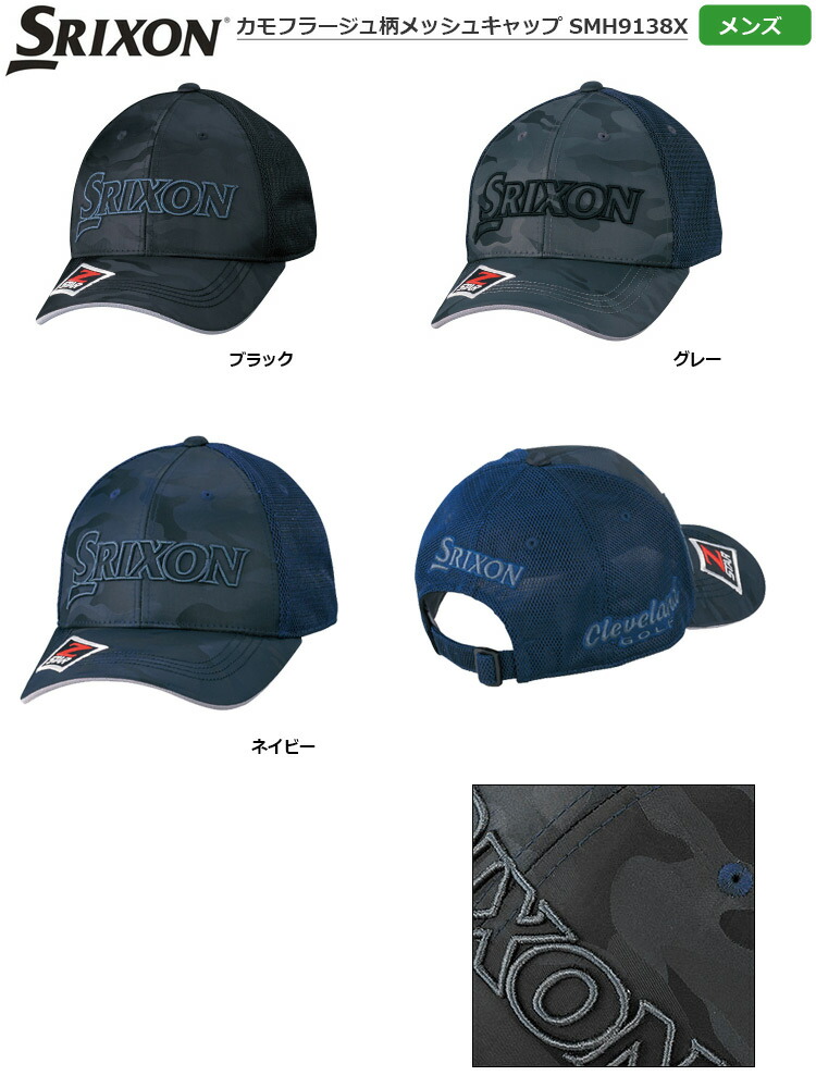 スリクソン 2019 カモフラージュ柄メッシュキャップ SMH9138X ブラック グレー ネイビー キャップ 日本正規品 SRIXON