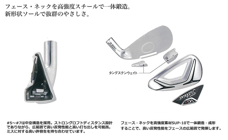 ヘッド素材 SUP-10(フェースネック:#5~#7)、軟鉄(フェースネック:#8、#9、P、A、AS、S)、17-4(ボディ)、タングステン・ニッケル(#5~#7)