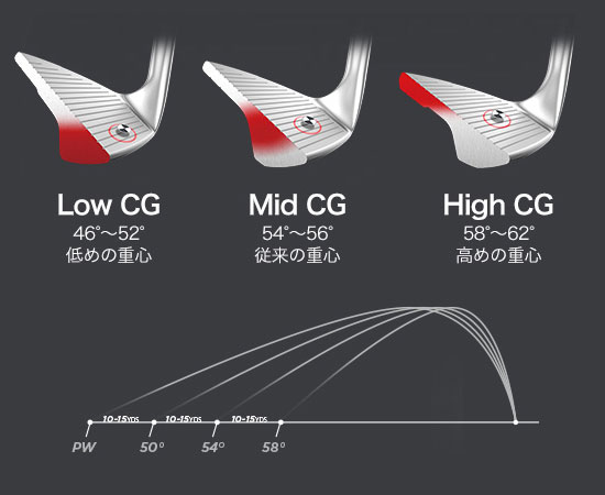 ロフト角別3段階の最適重心設計。