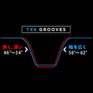 →新設計TX4グルーブ(溝)と、溝と溝の間に精密加工パラレルミーリングを施すことにより、優れたスピン性能を可能にしました。