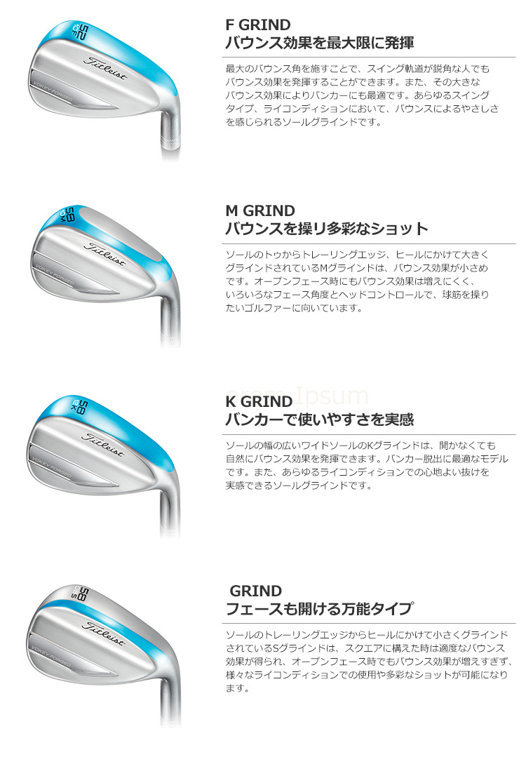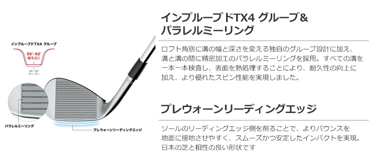 ツアープレーヤーの多彩な要望に応えて完成されたグラインドは、プレーヤーのレベルやコースコンディションに合わせることで、あらゆるウェッジショットに自信をもって臨めます。