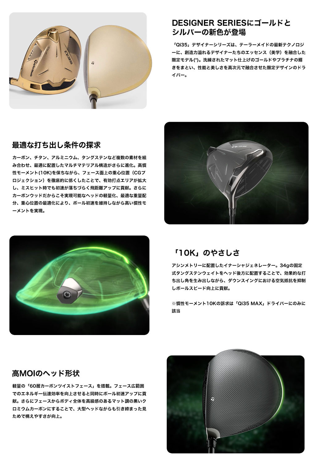 ヘッド素材 チタンフレームボディ [9-1-1 ti] + インフィニティカーボンクラウン + カーボンソール + 特殊強化カーボンコンポジットリング + MOIバックウェイト(34g)
