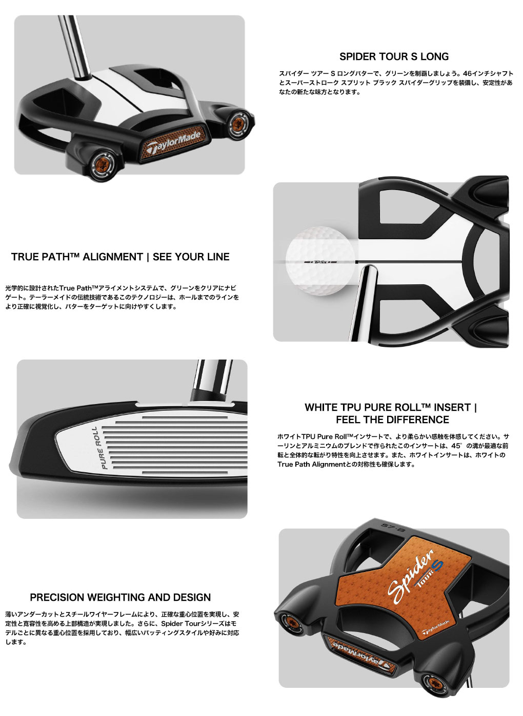 テーラーメイド Spider Tour S Long Black パター メンズ 右用 46インチ 長尺 スパイダー ツアー TaylorMade 2025年モデル USA直輸入品 並行輸入品 ゴルフクラブ