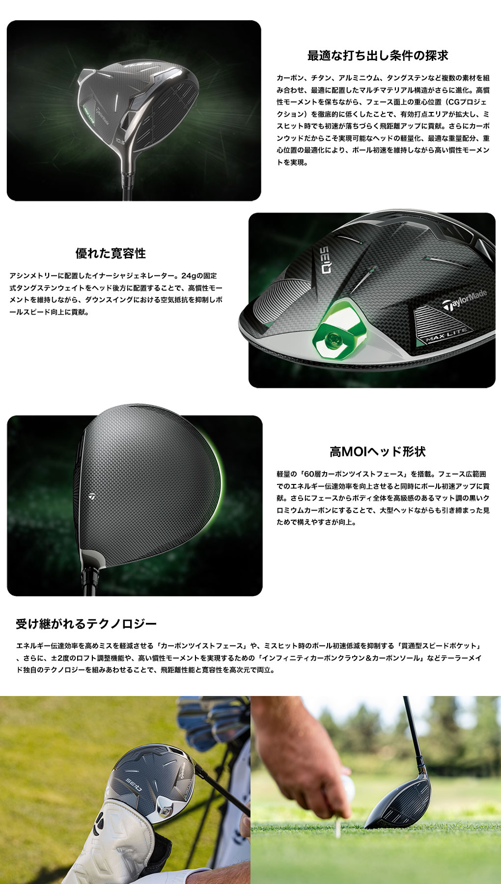 ヘッド素材 チタンフレームボディ [9-1-1 ti] + インフィニティカーボンクラウン + カーボンソール + 特殊強化カーボンコンポジットリング + MOIバックウェイト(24g)
