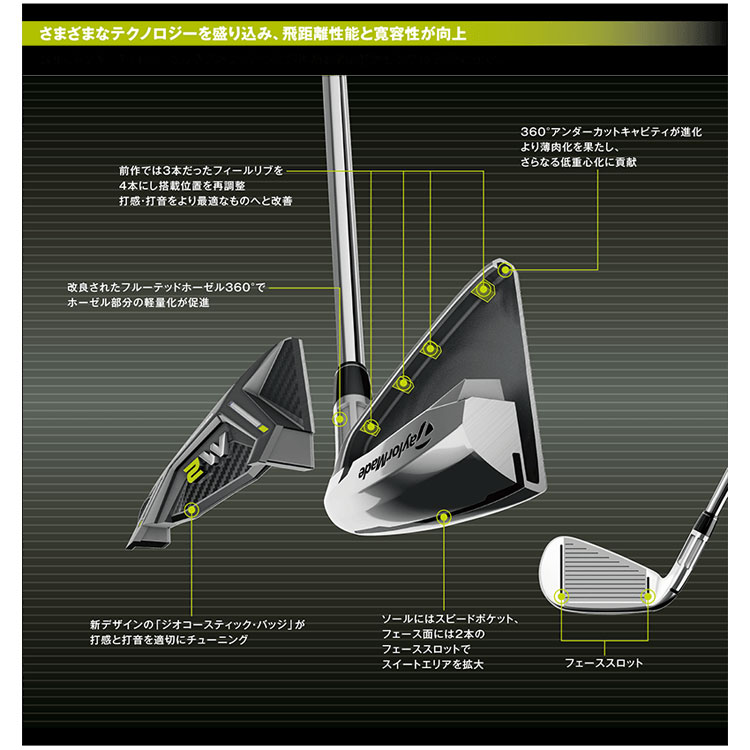 進化したマルチマテリアル構造の採用で飛距離性能と寛容性が高まった女性向け新・M2アイアン。