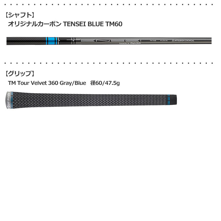 ● 「三菱ケミカル」と共同開発したオリジナルシャフト「TENSEI BLUE TM60」、KBS製スチールシャフト「MAX85 JP」を標準採用。
