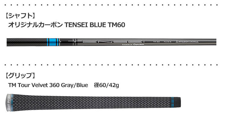 ● 「三菱ケミカル」と共同開発したオリジナルシャフト「TENSEI BLUE TM60」、KBS製スチールシャフト「MAX85 JP」を標準採用。