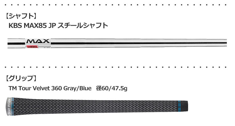 ● 「三菱ケミカル」と共同開発したオリジナルシャフト「TENSEI BLUE TM60」、KBS製スチールシャフト「MAX85 JP」を標準採用。