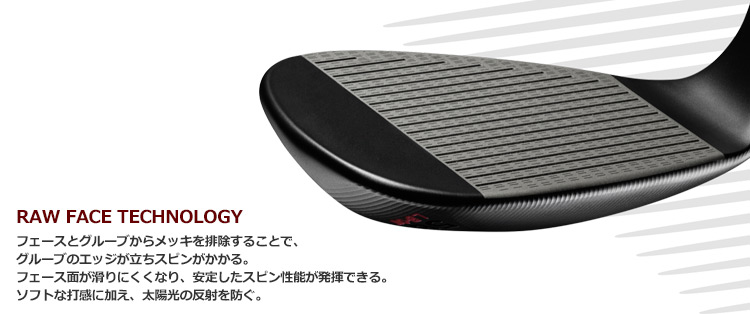 メッキをかけないことでグルーブ(溝)がより鋭利となりスピン性能がアップし、インパクト時にボールがフェースに乗るイメージが出る軟らかい打感も実現。