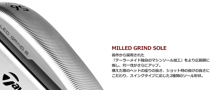 全製品のソール形状を均一に製造することが可能なテーラーメイド独自の「ミルドグラインド製法」を採用した新しい「ミルドグラインド 2 ウェッジ」誕生。