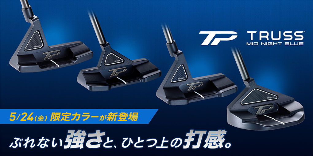 伝統的なヘッド形状に「カーボンコンポジット トラスホーゼル」搭載。優れた寛容性と安定性を実現した『TP TRUSS』に、直線的にストロークしやすい新しい2モデルが加わった『TP TRUSS MID NIGHT BLUE (全4モデル)』が数量限定で5/24(金)発売。