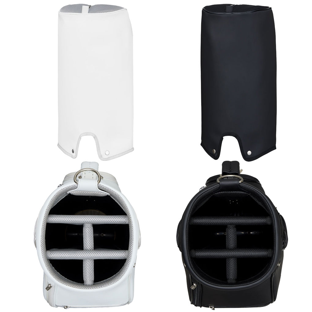 シャーリングデザインが特徴的な上品さとスタイリッシュさを持つキャディバッグ。サイドにシャーリングデザインを大胆に配置しフェミニンな印象を表現しながら、高級感のある合成皮革を使用し、ロゴをシンプルに仕上げることにより上品かつスタイリッシュさを感じられるレディスモデル。
