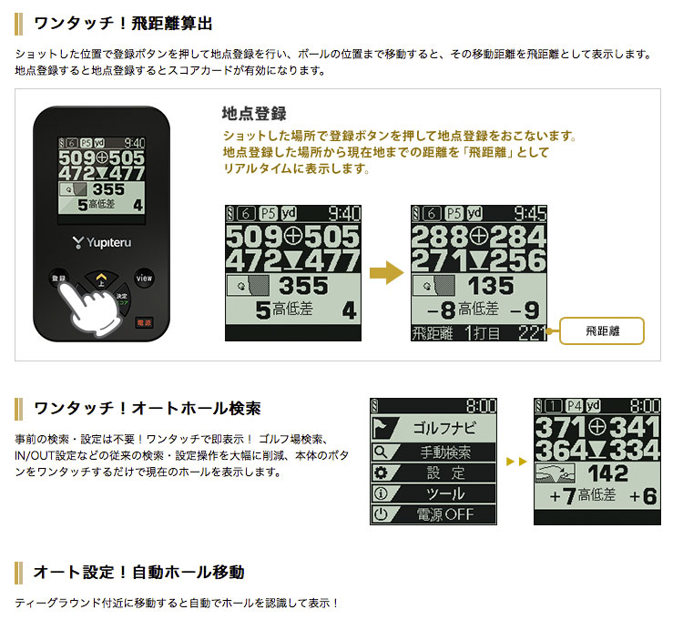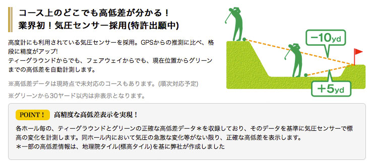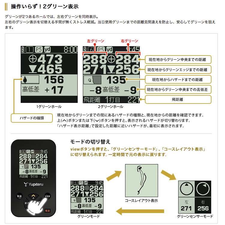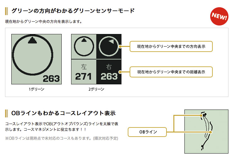 グリーンの方向がわかるグリーンセンサーモード搭載