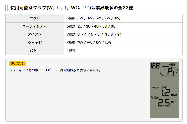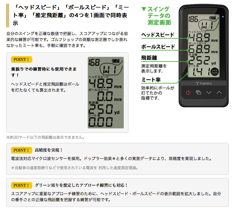ヘッドスピード表示範囲 10.0~99.9m/s(メートル/秒)