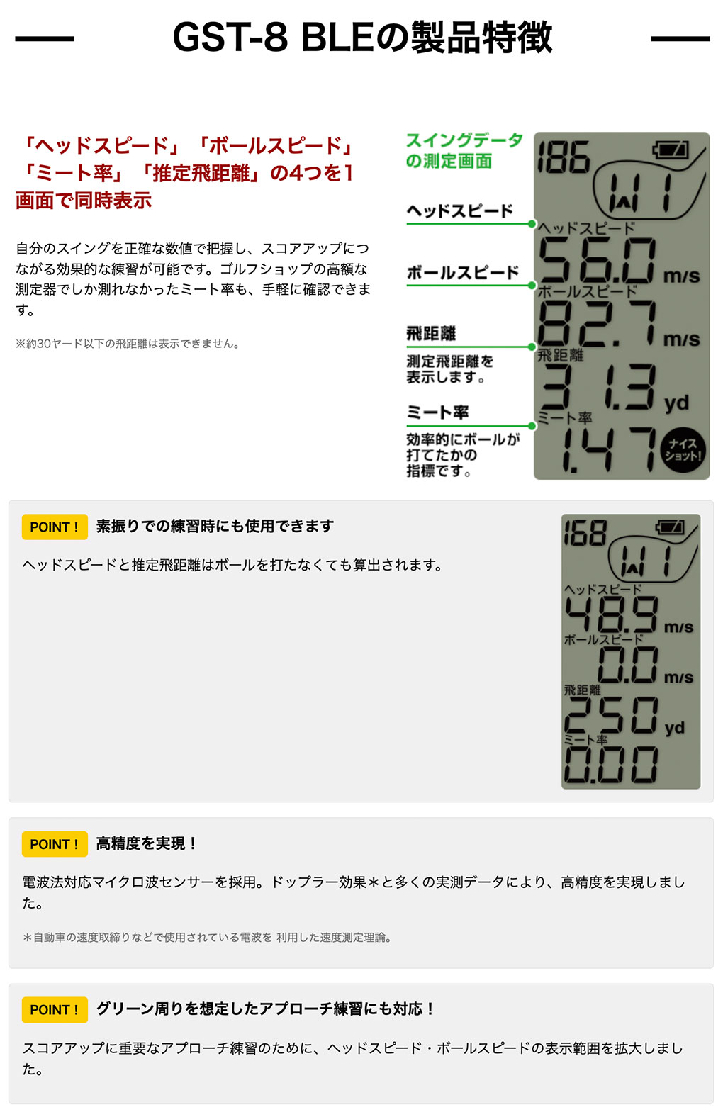 ゴルフ GPS機能付 距離計測器 ユピテル ゴルフスイングトレーナー GST-8 BLE ゴルフナビ Yupiteru 2023年モデル 正規取扱店
