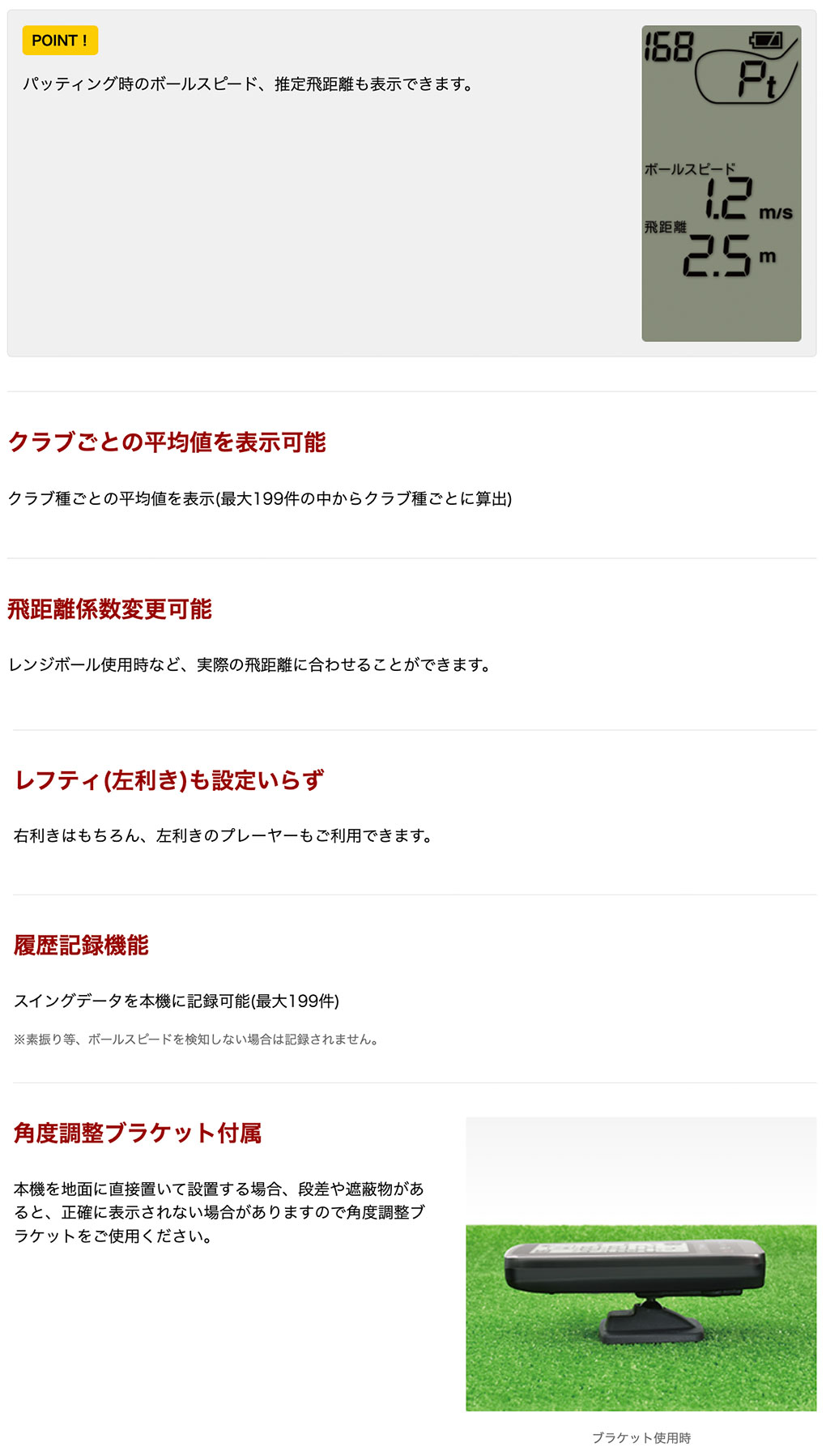 ヘッドスピード表示範囲 10.0~99.9m/s(メートル/秒)