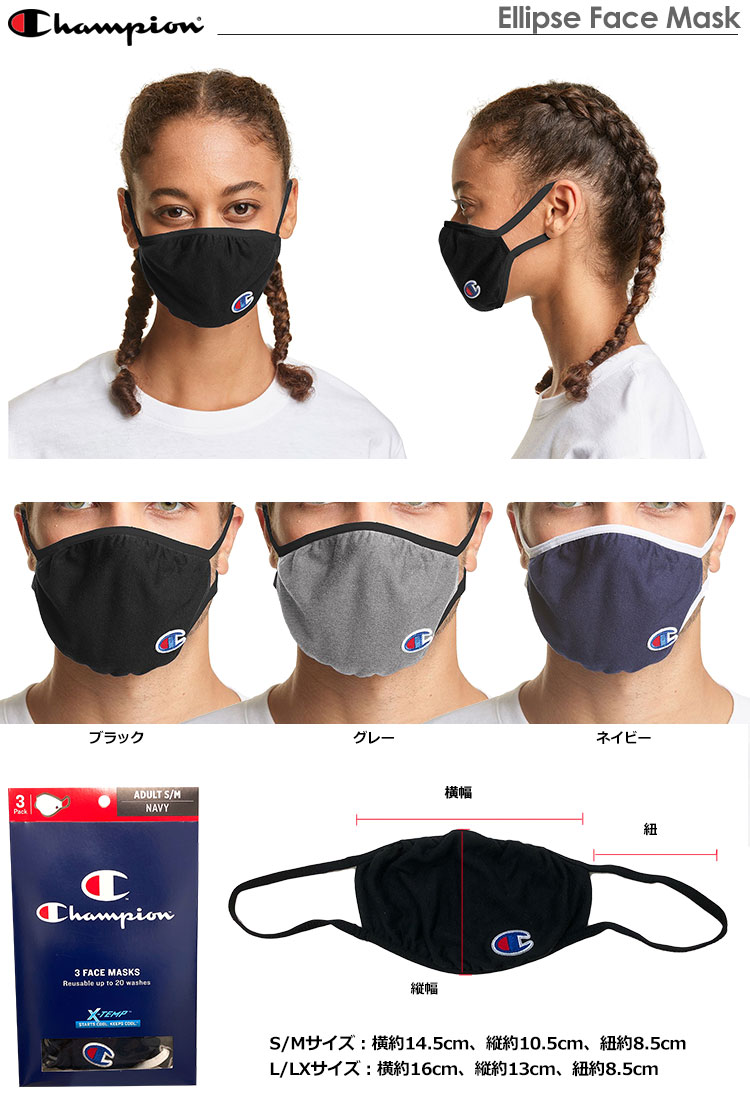 チャンピオン Champion Ellipse Face Mask マスク S/M、L/XLサイズ 3枚入り USA直輸入品