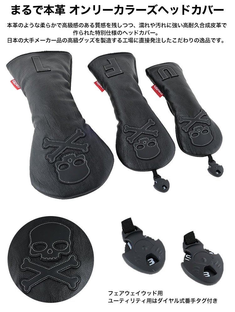 OOWLS まるで本革 オンリーカラーズ ヘッドカバー スカル JYP-JT21OLHK ドライバー フェアウェイ ユーティリティ ブラック 製造直販