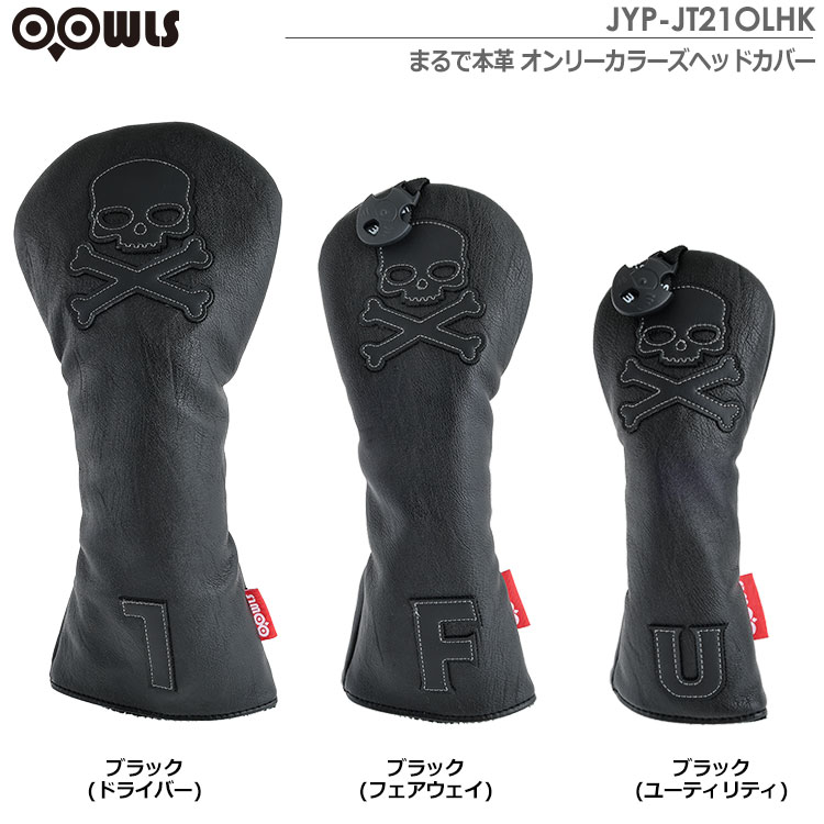 【毎日発送】OOWLS まるで本革 オンリーカラーズ ヘッドカバー スカル JYP-JT21OLHK ドライバー フェアウェイ ユーティリティ ブラック 製造直販【ジーパーズオリジナル商品】