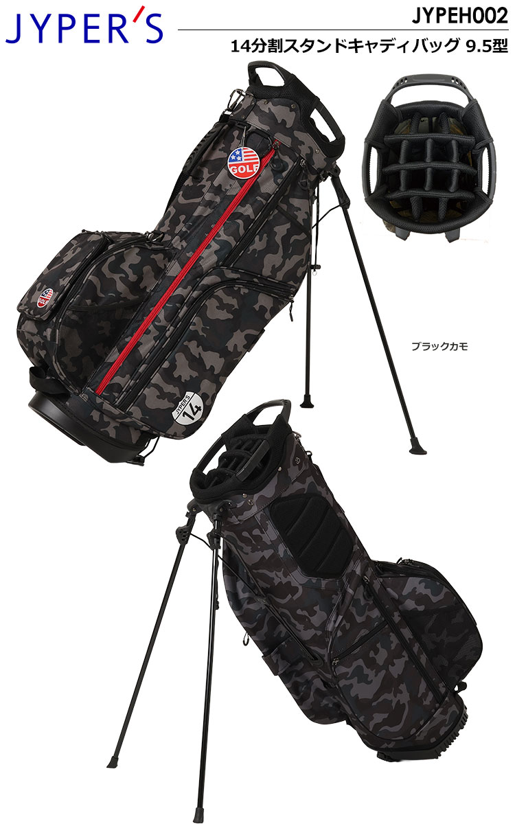 【毎日発送】【追加カラー登場】ジーパーズ 14分割スタンドキャディバッグ 9.5型 JYPEH002 ブラックカモ 2023年継続モデル【JYPER'Sオリジナル商品】