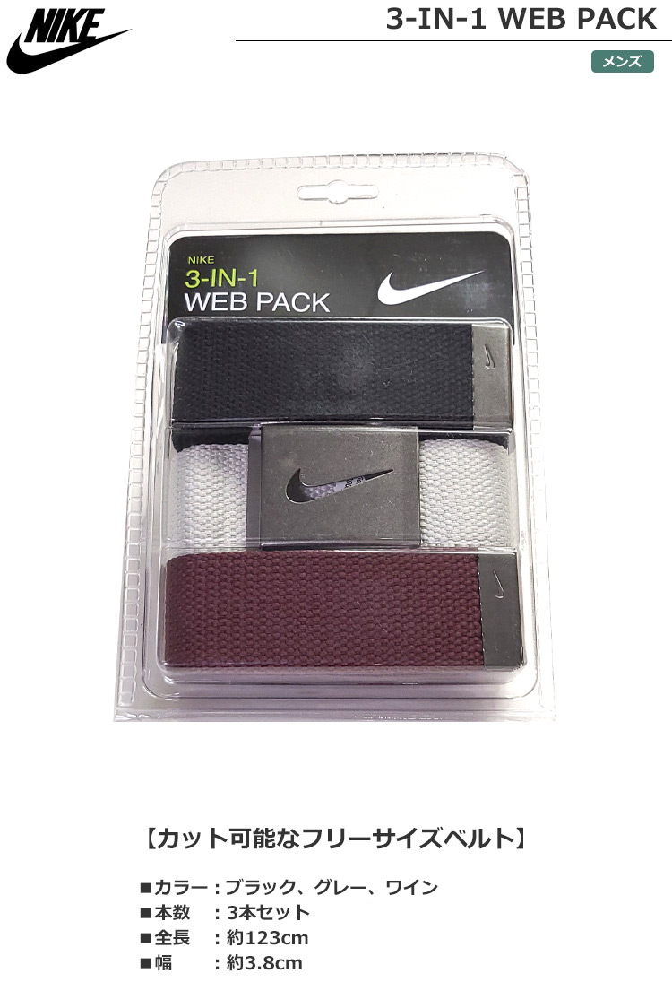 【毎日発送】ナイキ NIKE 3-IN-1 WEB PACK BELT 3本セット バックルベルト メンズ 長さカット調節式 DS5006945X USA直輸入品