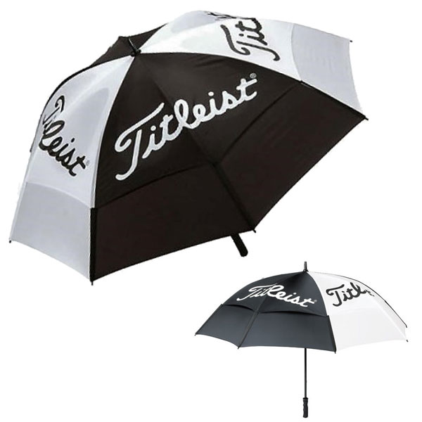 ●白と黒のシンプルなツートンカラーにタイトリストロゴが大きくデザインされたアンブレラ。
