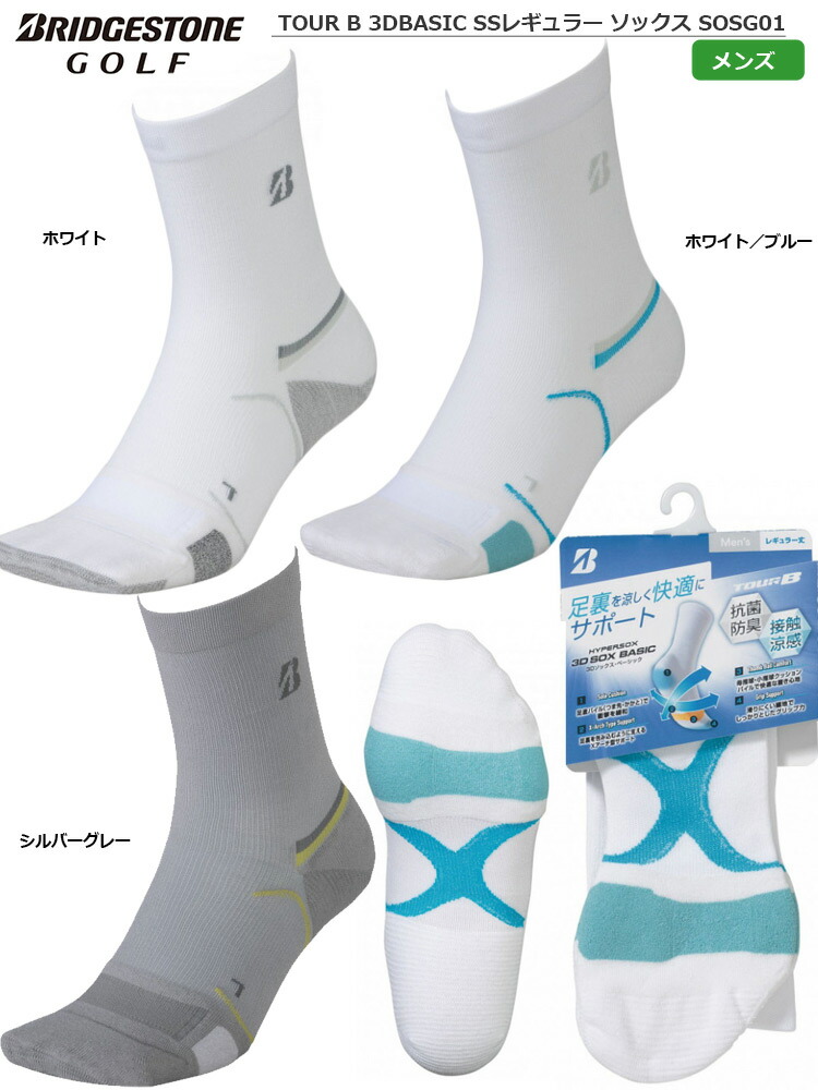 ブリヂストン TOUR B 3DBASIC SSレギュラー ソックス メンズ 2020春夏 SOSG01 ホワイト ホワイト/ブルー シルバーグレー 日本正規品