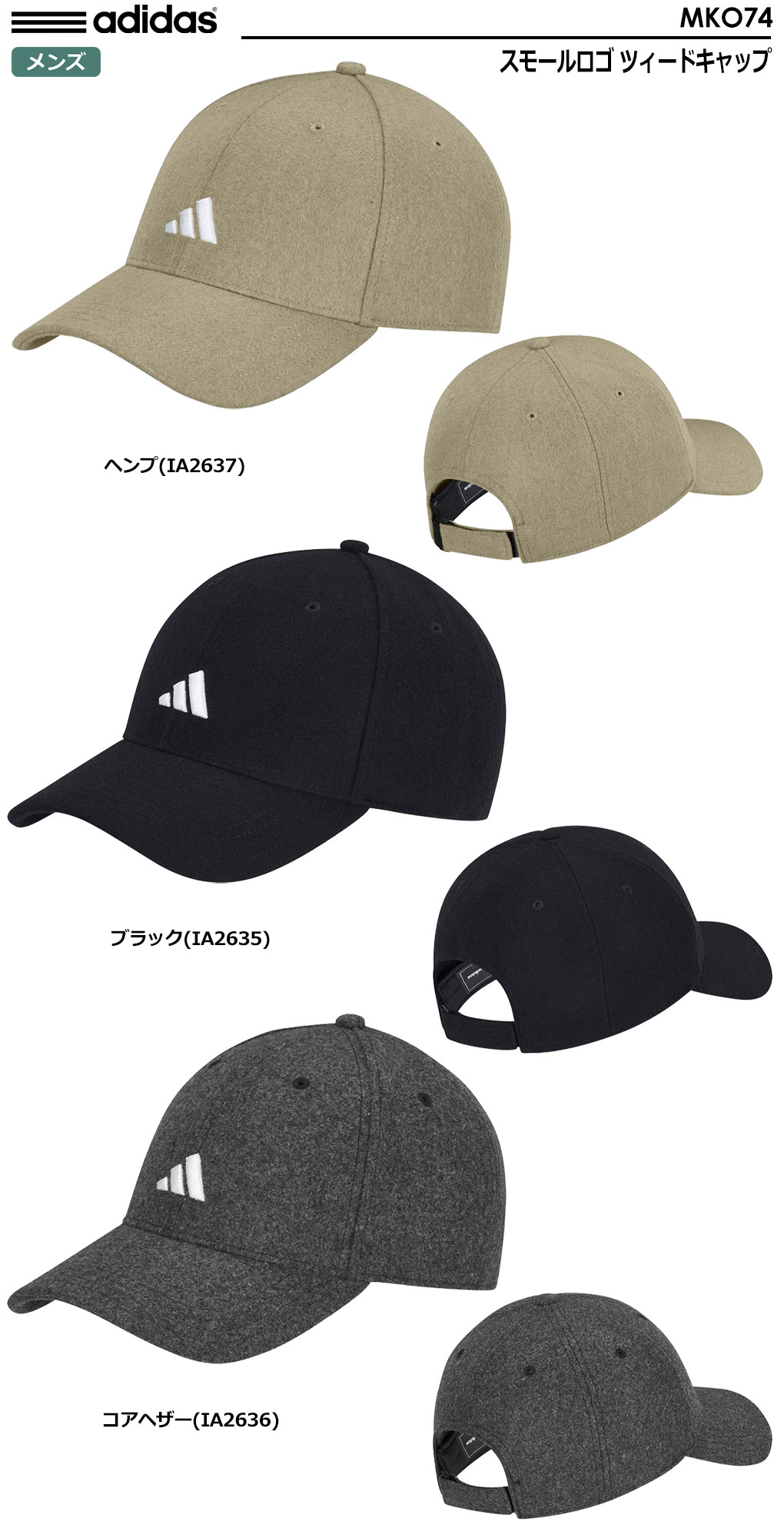 【毎日発送】アディダス スモールロゴ ツィードキャップ MKO74 メンズ adidas 2023秋冬モデル 日本正規品
