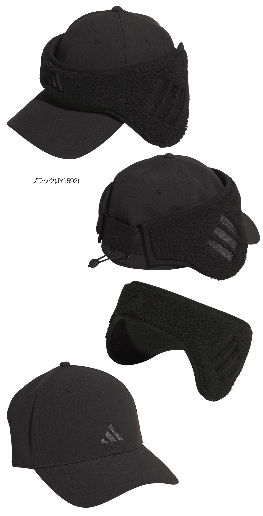 アディダス 撥水 耳当て付き スリー イン ワン キャップ KQE08 メンズ ゴルフキャップ 帽子 防寒 2025秋冬モデル adidas 日本正規品
