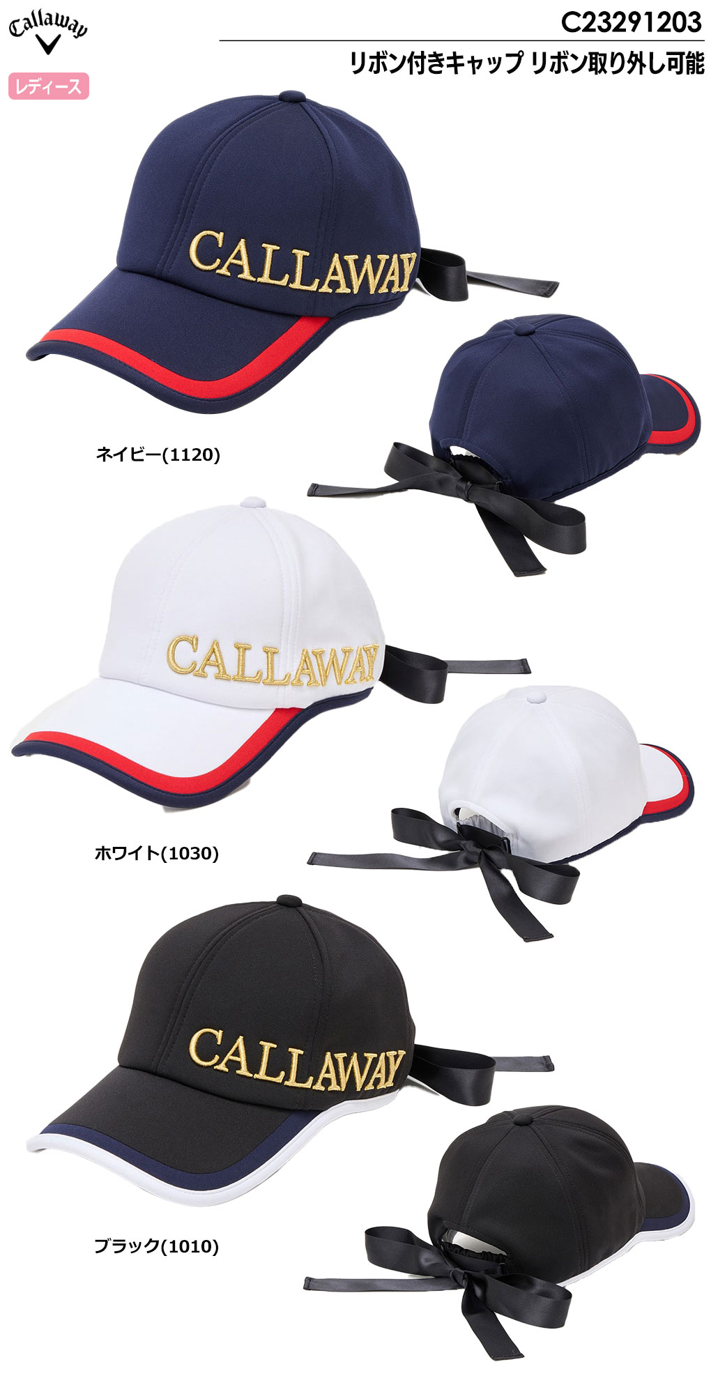 【毎日発送】キャロウェイ リボン付きキャップ リボン取り外し可能 C23291203 レディース 帽子 Callaway 2023秋冬モデル 日本正規品