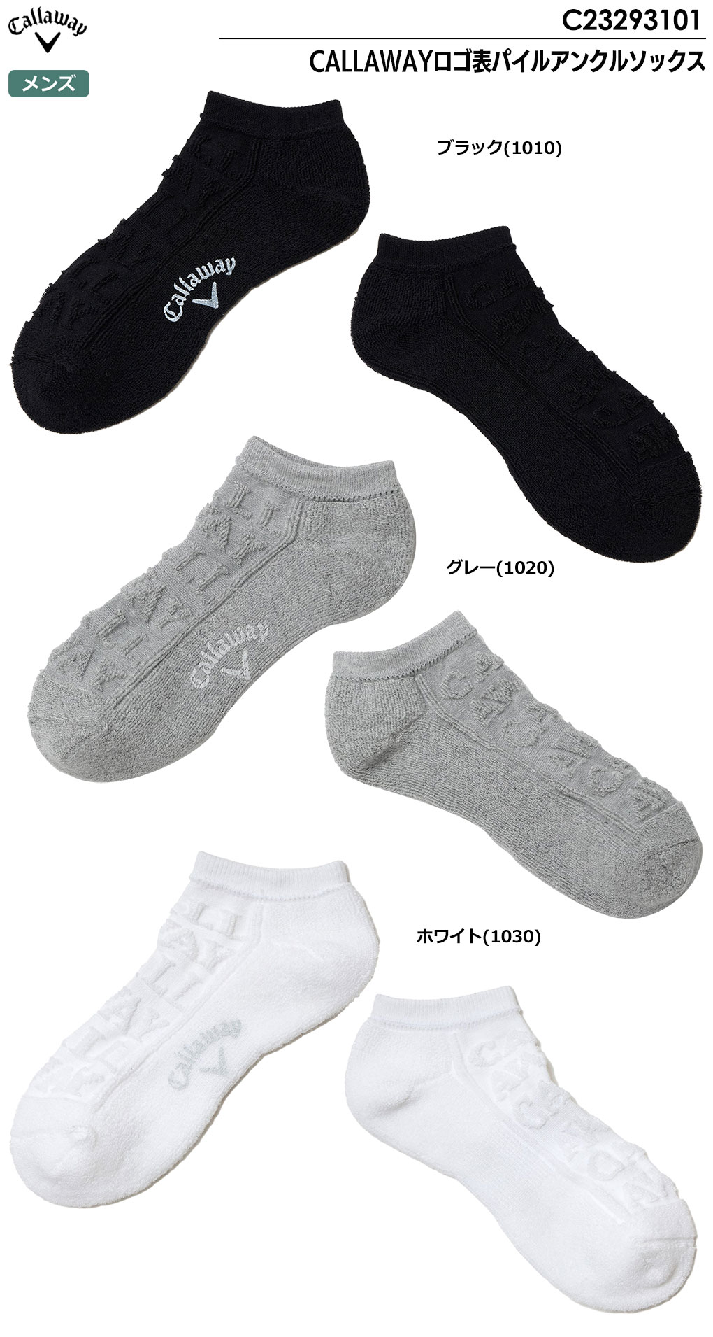【毎日発送】キャロウェイ CALLAWAYロゴ表パイルアンクルソックス C23293101 メンズ 靴下 Callaway 2023秋冬モデル 日本正規品
