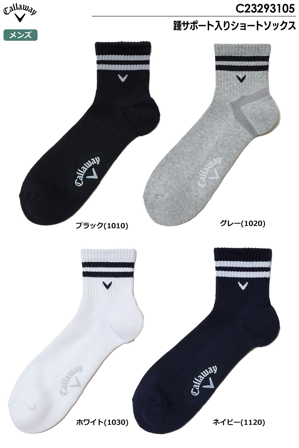 【毎日発送】キャロウェイ 踵サポート入りショートソックス C23293105 メンズ 靴下 Callaway 2023秋冬モデル 日本正規品
