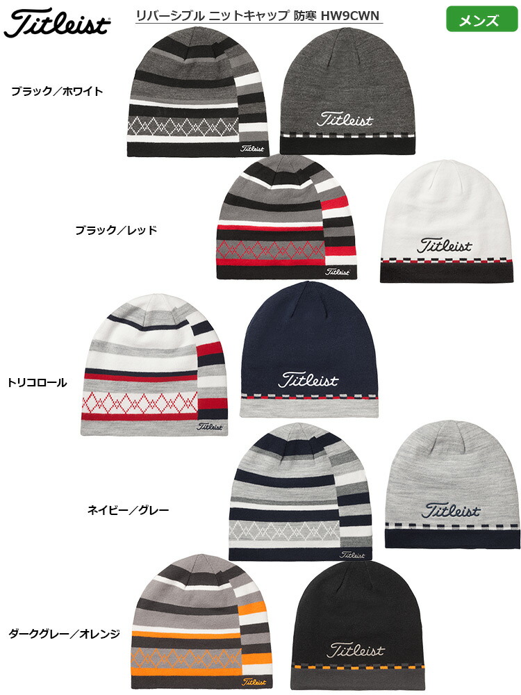 タイトリスト Titleist メンズ リバーシブル ニットキャップ 防寒 HW9CWN ブラック/ホワイト ブラック/レッド トリコロール ネイビー/グレー ダークグレー/オレンジ キャップ 日本正規品