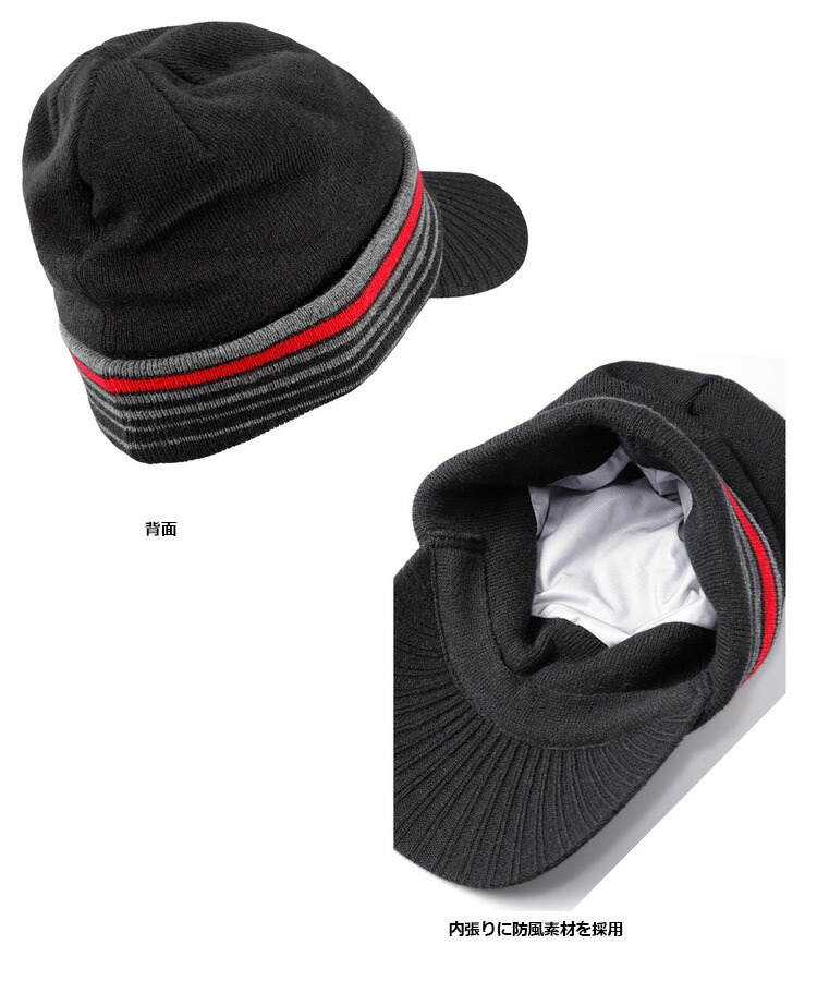 防風素材を裏地に採用した、ツバ付きニットキャップ。
