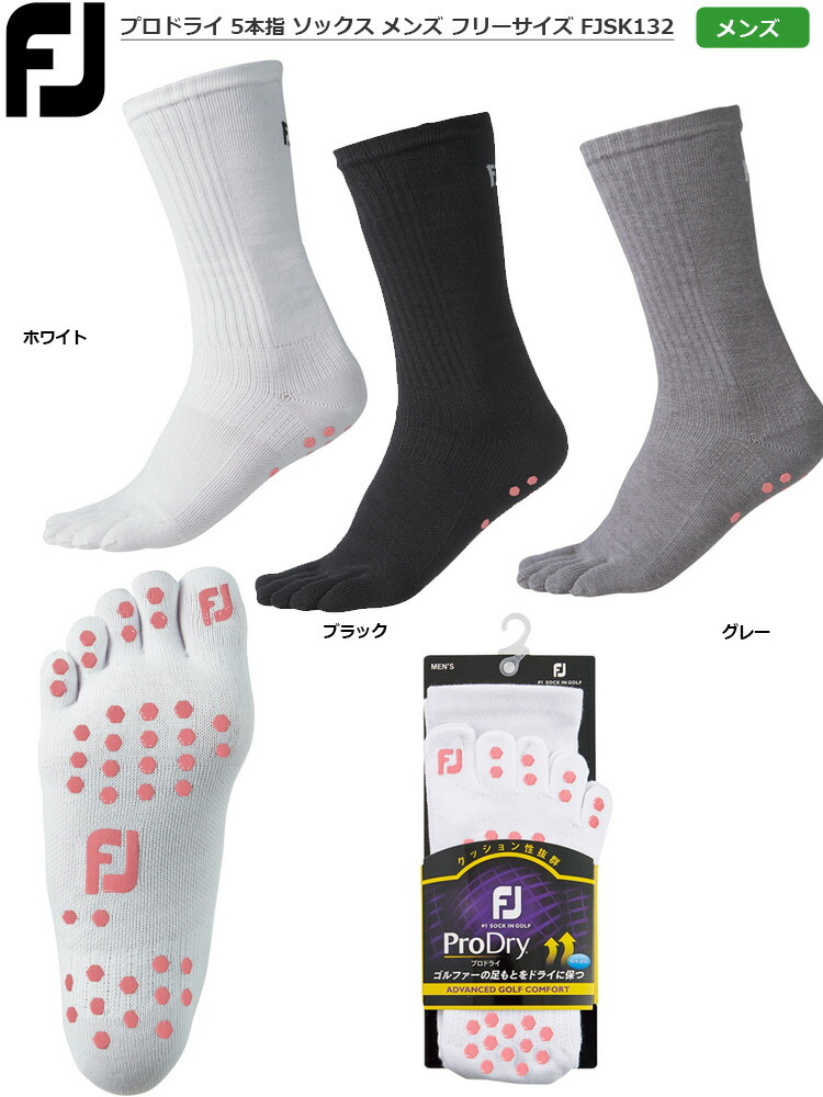 フットジョイ プロドライ 5本指 ソックス メンズ フリーサイズ FJSK132 ホワイト ブラック グレー 日本正規品 メンズゴルフウェア Foot Joy