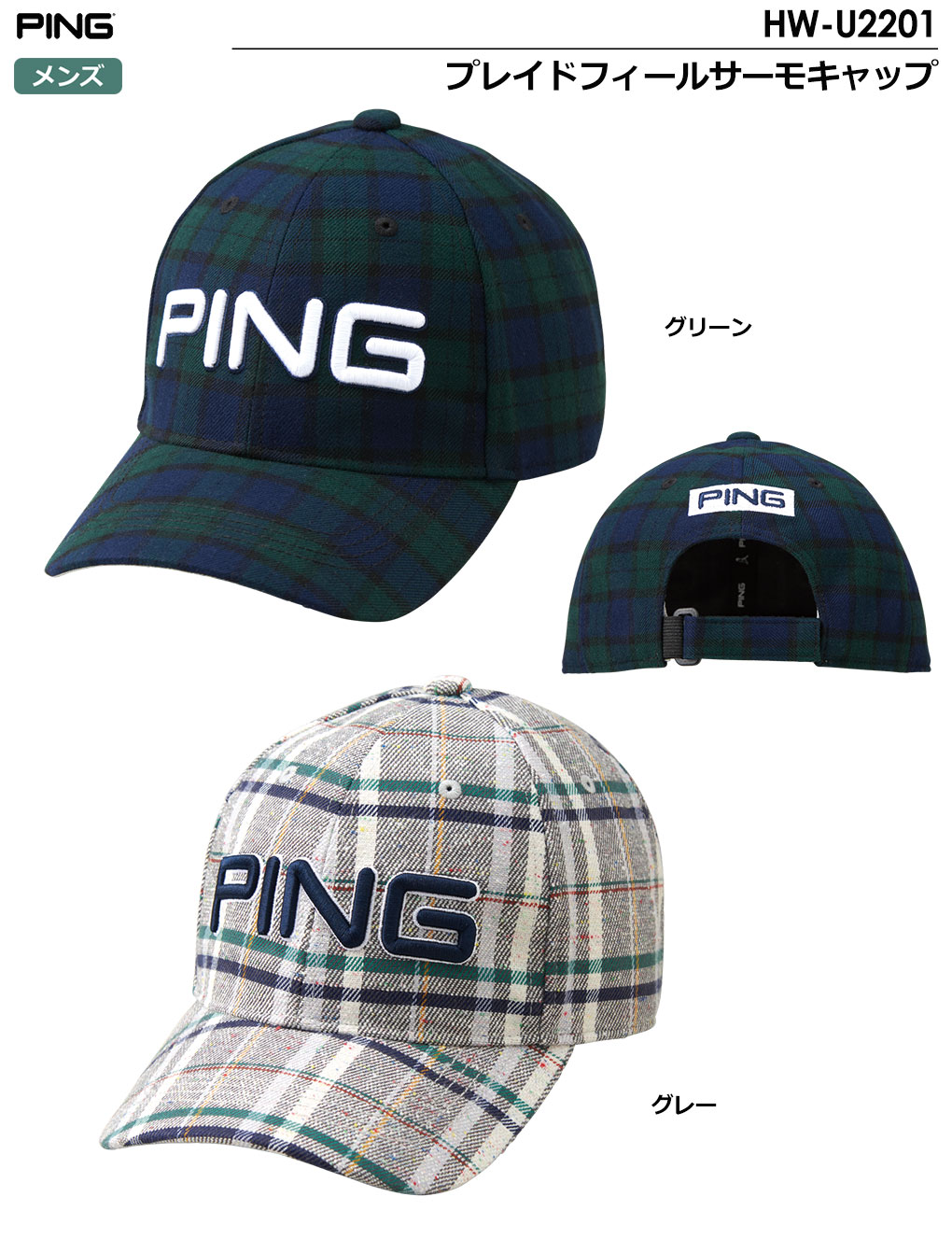 ピン PING HW-U2201 プレイドフィールサーモキャップ メンズ 2022秋冬モデル 日本正規品 日本モデル ゴルフ ゴルフ用品 ウェアアクセサリー 帽子 キャップ