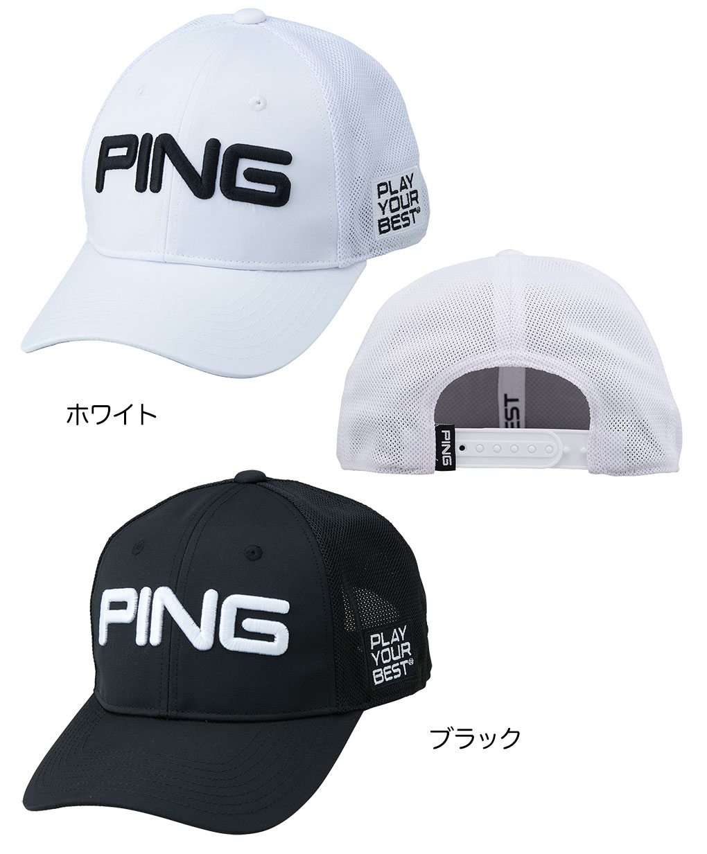 ・PINGロゴ立体刺繍の定番メッシュキャップ