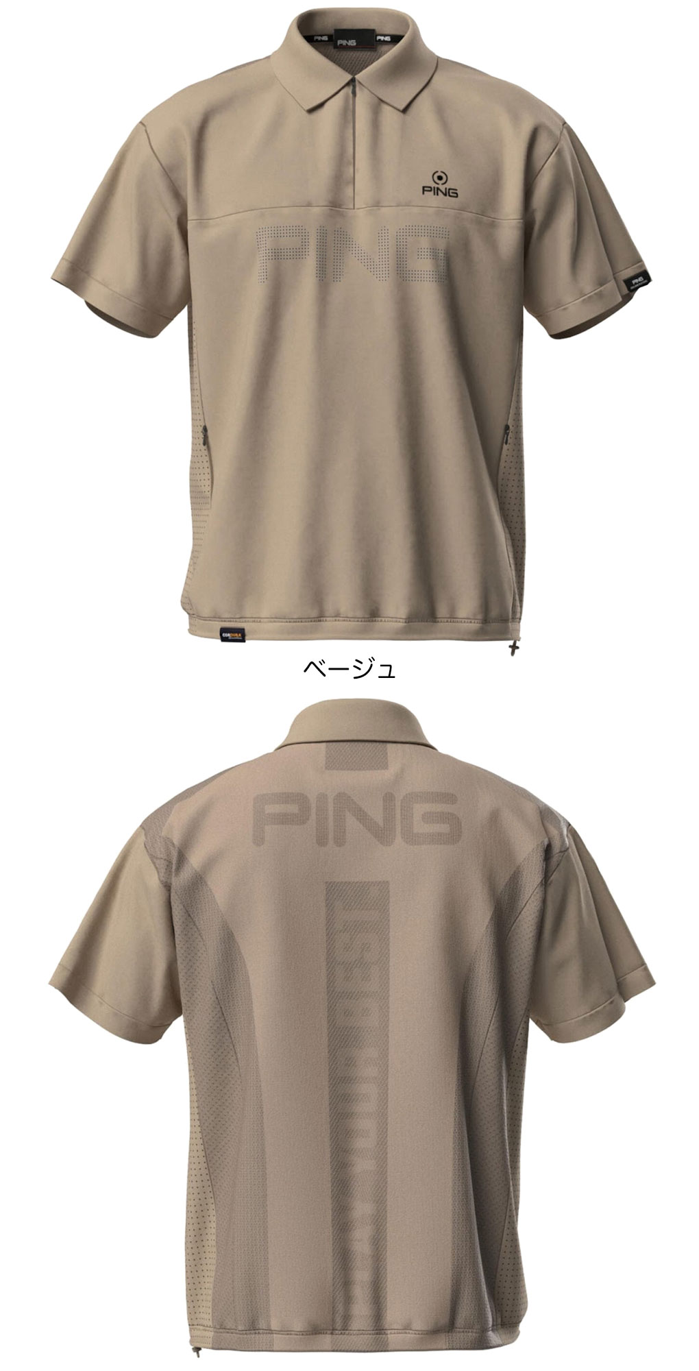 PINGのロゴで大きなインパクトを与えた、ストレッチ布帛/メッシュジャガード半袖ハーフジップポロブルゾン。強度と耐久性を兼ね備えたコーデュラナイロンと、高通気素材やメッシュを採用した涼風-SUZUKAZEで作られた一枚仕立てのアイテムです。使い込むほどに愛着が増し味わい深くなっていく、丈夫な生地の経年変化を楽しめる素材感で、ゴルフにアウトドアに、デイリーユースに幅広く活用できる一着です。