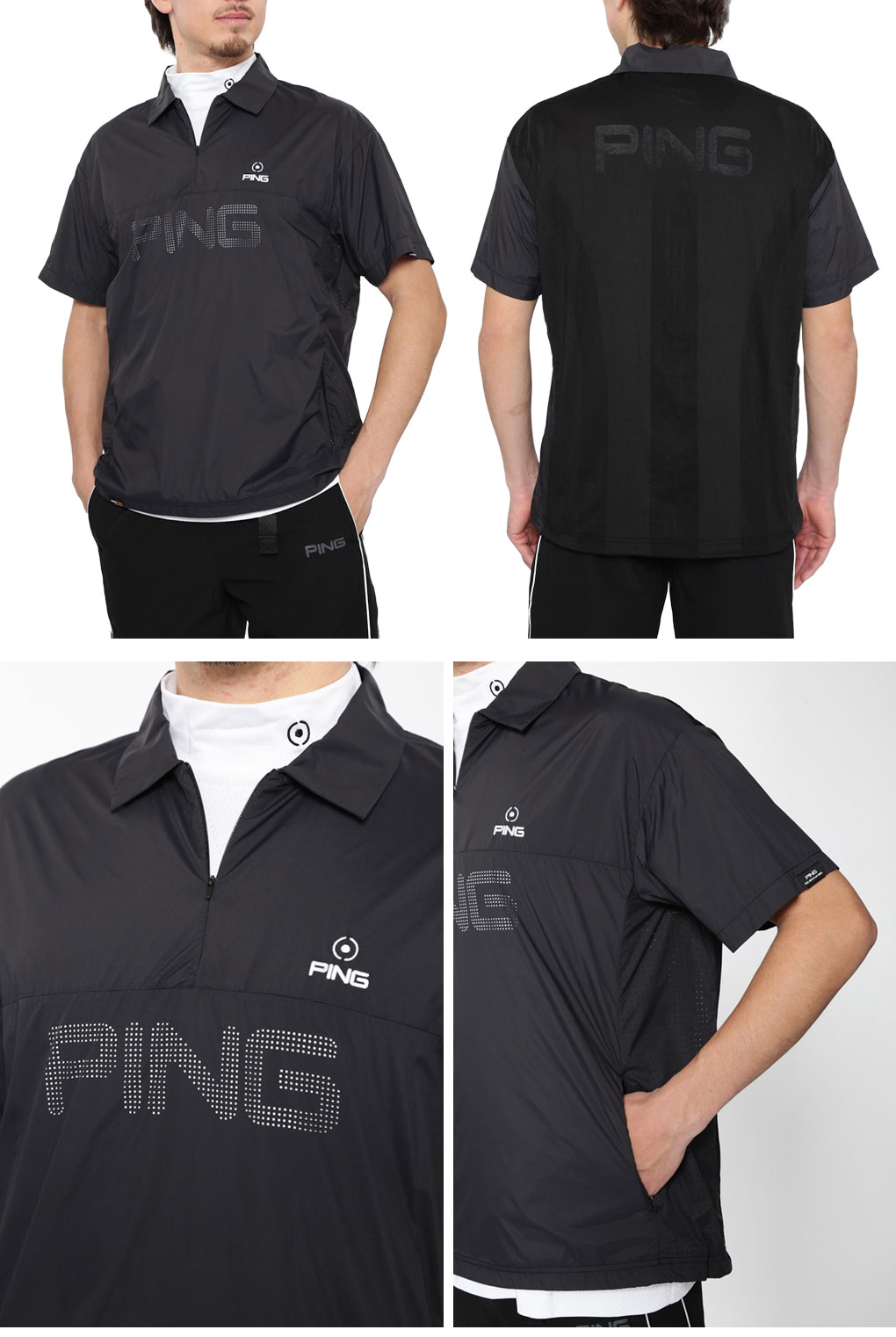 ピン PING ストレッチ布帛/メッシュジャガード半袖ハーフジップポロブルゾン 621-5121203 メンズ ゴルフウェア 2025春夏モデル 日本正規品