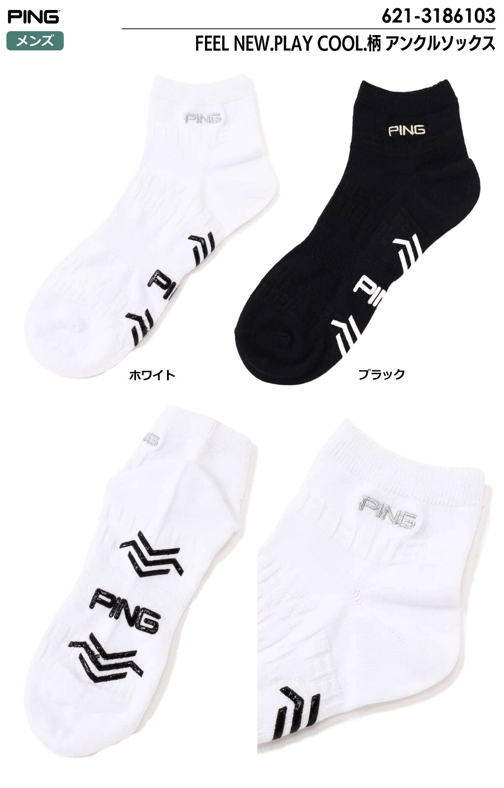 ピン PING FEEL NEW.PLAY COOL.柄 アンクルソックス 621-3186103 メンズ 2023春夏モデル 靴下 ソックス 日本正規品 日本モデル ゴルフ ゴルフ用品 ウェアアクセサリー ソックス 靴下