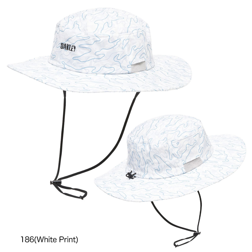 定番スタイルのOAKLEY BOONIE HAT。新色を取り揃えて2025年も販売します。フロントにはステンシル調のロゴ。製品仕様はアップデートされ、酷暑でも快適に使用できるよう通気性を高めるメッシュ部分を増やしております。取り外し可能なあご紐。サイズ調整可能。汗止め部分には吸汗速乾性と抗菌防臭性に冷感加工を施したハイブリッド素材を採用。